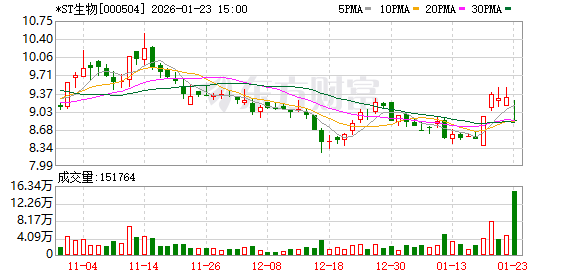 1月22日晚间,*ST生物(000504)发布2025年年度业绩预告称,预计2025年营业收入3.85亿元至4.25亿元,扣除后营业收入为3.6亿元至4亿元。