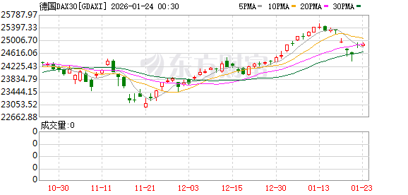 欧股市场:欧洲三大股指01月23日涨跌不一。英国伦敦股市《金融时报》100种股票平均价格指数报收于10143.44点,较前一交易日下跌6.61点,跌幅为0.07%;法国巴黎股市CAC40指数报收于8143.05点,较前一交易日下跌5.84点,跌幅为0.07%;德国法兰克福股市DAX指数报收于24900.71点,较前一交易日上涨44.24点,涨幅为0.18%。