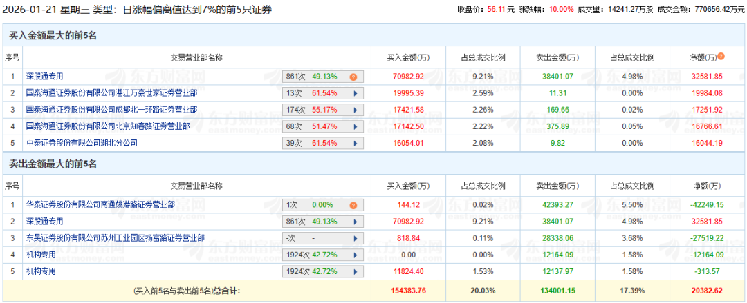 通富微电(002156)是国内先进封装龙头,今日股价再度涨停,近期走出“4天2板”。龙虎榜显示,国泰海通证券成都北一环路证券营业部、国泰海通证券北京知春路证券营业部分别买入1.74亿元和1.71亿元,分列买三、买四位置。两家席位均被视为活跃游资席位,今年以来参与交易了岩山科技、美好医疗、雷科防务等短线热门股票。