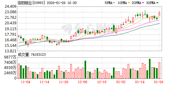 2025年,洛阳钼业产铜量达741149吨,较2024年增长9万余吨;按2025年初产量指引中值计算,完成度为118%。2026年,公司铜金属产量指引为76万吨至82万吨。