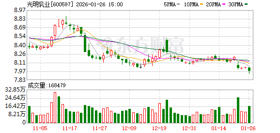 公开资料显示,光明乳业成立于1996年10月,是国内规模较大的三家乳制品生产、销售企业之一。公司拥有世界一流的乳品研发中心、乳品加工设备以及先进的乳品加工工艺,形成了消毒奶、保鲜奶、酸奶、超高温灭菌奶、奶粉等系列产品,于2002年8月在上海证券交易所上市。