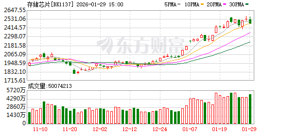 消息面上,隔夜美股存储芯片板块暴涨,希捷科技、西部数据、闪迪、美光科技分别大涨19.14%、10.7%、9.6%和6.1%,且这四股均创出历史新高。