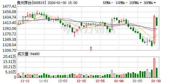 据大智慧VIP,截至1月28日收盘,贵州茅台报1323.69元/股,跌1.44%;今年以来累计跌3.88%。