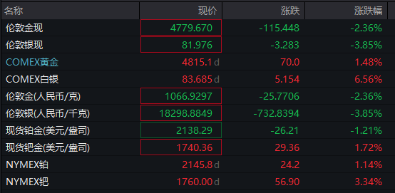 值得注意的是,尽管COMEX黄金、COMEX白银日内转涨,但其价格仍低于上周五收盘价。