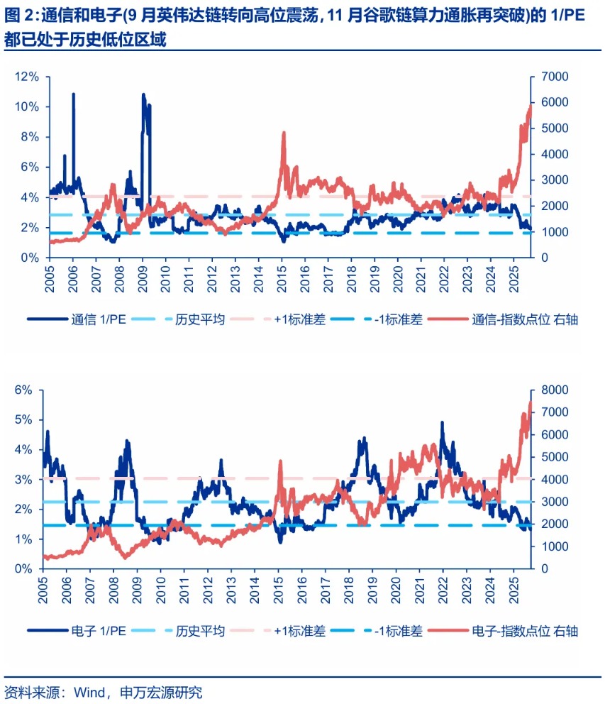 大波段定位:开门红行情是2025年结构性行情的拓展和延伸。中长期产业趋势/中期基本面上行周期的预期,与增量博弈环境共振,行情提前基本面抢跑。但抢跑行情也有演绎规律。当板块估值提升到历史高位区域后,行情演绎的阻力自然增加,上涨波段向震荡波段过渡。后续通常需要回调消化估值 + 业绩消化估值,等待中期性价比改善 + 基本面加速阶段到来,再开启业绩 + 估值共振的新上涨阶段。2025年9月以来,结构主线交替,多个板块都经历了从上涨波段到震荡波段的过渡。2025年9月,英伟达算力链进入高位震荡区间;2025年9-10月储能和光伏领涨,11月中旬也进入高位震荡区间;2025年11月下旬谷歌算力链启动,12月中下旬商业航天启动,2026年开年AI应用启动。截至目前,通信、电子,国防军工、计算机,以及基础化工的估值都已处于历史高位区域,同时全部A股总体PE估值也在历史高位区间。结构性行情的拓展和延伸,也来到了中期性价比不足的阶段。商业航天、AI应用、基础化工产业趋势都还有空间,但提估值行情演绎趋于充分后,后续也会有高位震荡阶段,需要时间业绩消化估值。