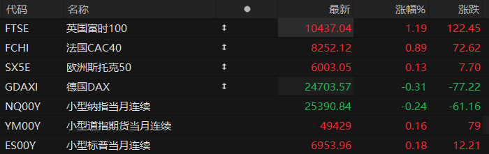 周三盘前,美股三大股指期货涨跌不一,欧洲主要指数多数上涨。截至发稿,纳斯达克100指数期货跌0.24%,道指期货涨0.16%,标普500指数期货涨0.18%。