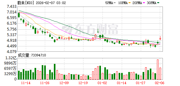 截至2月5日收盘,蔚来港股为36.56港元/股,涨幅为2.70%,市值为904.38亿港元。