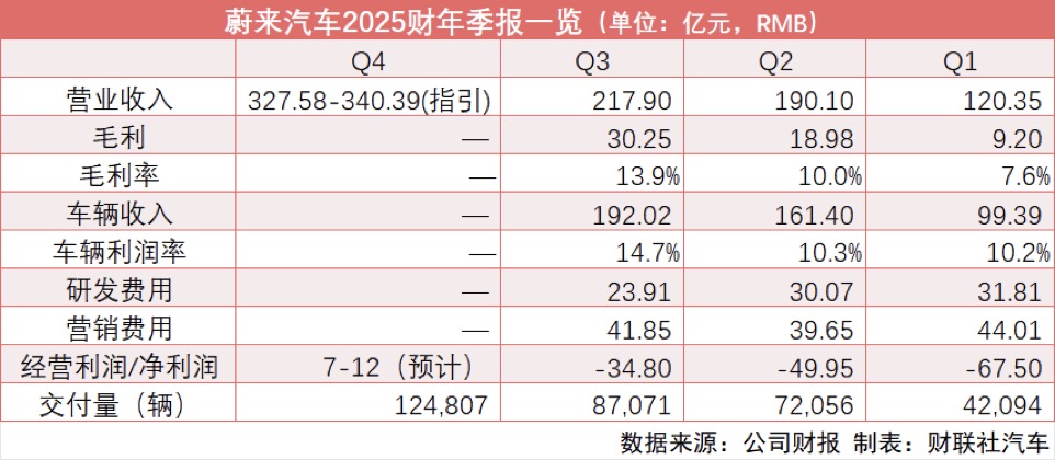 按公认会计准则,预计蔚来2025年第四季度录得经营利润约2亿元至7亿元。相比之下,2025年三季度公司净亏损为34.80亿元,2024年四季度净亏损为71.11亿元。