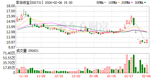 最新业绩方面,1月31日,萃华珠宝发布2025年年度业绩预告,公司预计2025年全年归属于上市公司股东的净利润为2100万元~3100万元,同比预减85.69%~90.31%;预计2025年全年归属于上市公司股东的扣除非经常性损益的净利润为16200万元~24200万元,同比预增154.81%~280.64%。