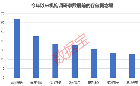 存储大周期下,概念股获得机构高度关注。统计显示,年初以来共有13只存储股获机构调研,其中东芯股份、安集科技、佰维存储等7股机构调研家数均在20家以上。