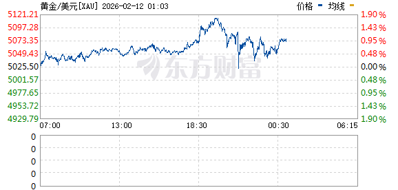 现货黄金突然跳水近40美元,目前涨幅收窄至0.53%,报5054.46美元/盎司,此前最高一度站上5100美元。