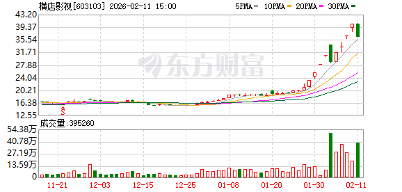 二级市场上,横店影视近9个交易日斩获7个涨停板,最新股价报40.41元/股,总市值为256.28亿元。