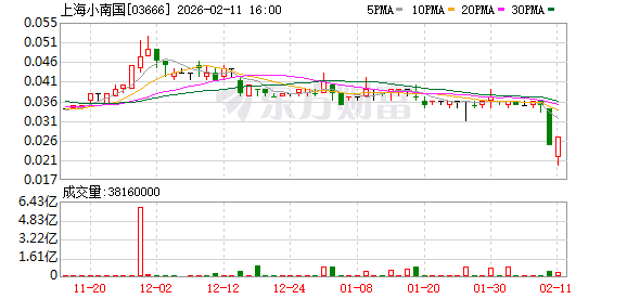 2月10日,上海小南国股价大跌28.57%,收报0.025港元/股,总市值为6639万港元。
