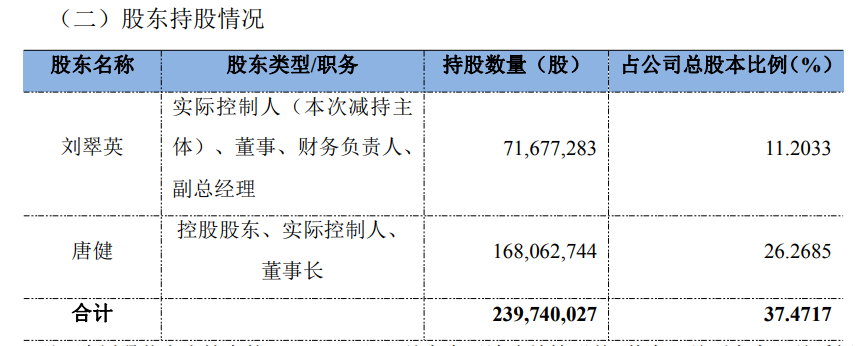 公告显示,本次减持主体为公司董事、财务负责人、副总经理刘翠英女士,其与公司控股股东、实际控制人、董事长唐健为夫妻关系,共同为公司实际控制人,合计持有公司股份239,740,027股,占公司总股本的比例为37.4717%。刘翠英女士计划自本公告披露之日起15个交易日后的3个月内(即2026年3月13日至2026年6月12日)通过深交所集中竞价和大宗交易方式减持公司股份合计不超过17,910,000股(占本公司总股本的比例不超过2.80%)。其中,通过集中竞价方式减持不超过6,390,000股(即连续90个自然日内减持股份的总数不超过公司总股本的比例不超过1%),通过大宗交易方式减持不超过11,520,000股(即连续90个自然日内减持股份的总数不超过公司总股本的比例不超过2%)。