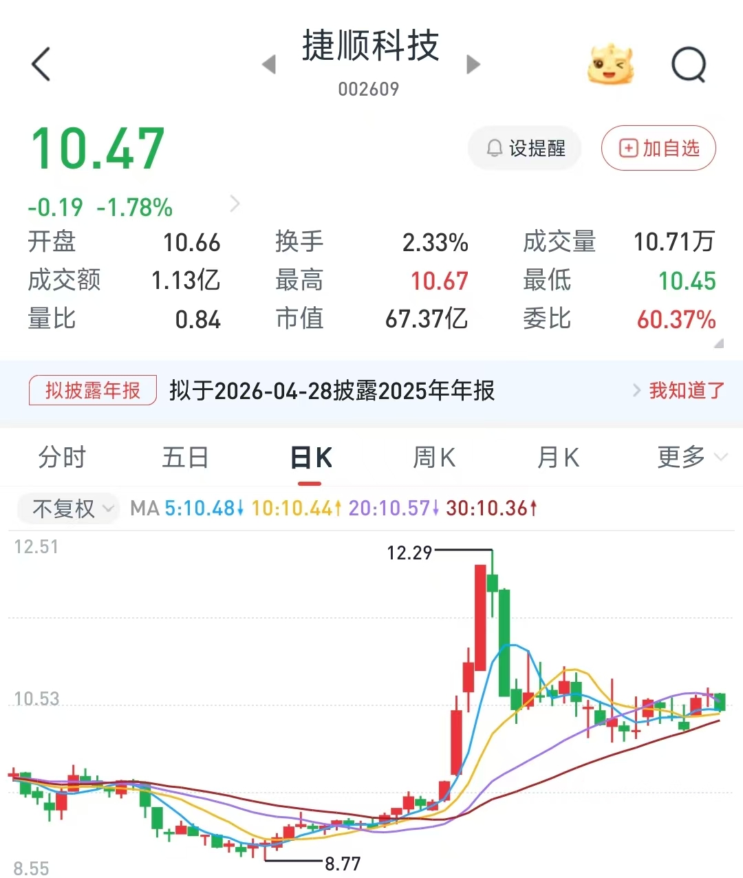 二级市场上,捷顺科技11日收盘报10.47元/股,跌1.78%。以该收盘价粗略计算,刘翠英本次拟最高减持的这1791万股的市值达1.875亿元。近一年来,捷顺科技整体走势向好,涨幅(不复权)达21.46%。