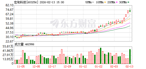 2月12日晚,宏和科技在上交所发布股票交易风险提示公告称,公司股票于2月9日、2月10日、2月11日连续三个交易日内日收盘价格涨幅偏离值累计超过20%,属于股票交易异常波动情形。2月12日,公司股票价格再次涨停,鉴于公司股票价格短期涨幅较大,敬请广大投资者注意二级市场交易风险,理性决策,审慎投资。