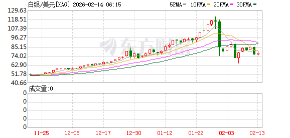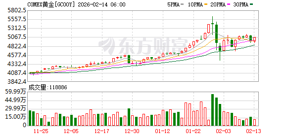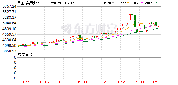 商品市场:金、银期现货均涨超2%,金价重返5000美元之上。COMEX黄金期货当月连续合约上涨115.40美元,涨幅2.33%,报5063.8美元/盎司。COMEX白银期货当月连续合约上涨1.59美元,涨幅2.10%,报77.27美元/盎司。现货黄金上涨120.37美元,涨幅2.45%,报5042.22美元/盎司。现货白银上涨2.11美元,涨幅2.80%,报77.39美元/盎司。国际油价02月13日下跌,截至当天收盘,纽约商品交易所WTI原油期货当月连续合约下跌0.03美元,收于每桶62.81美元,跌幅为0.05%。