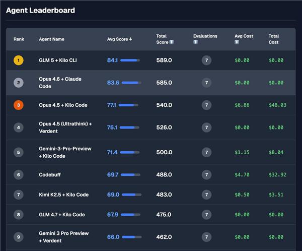 在代理编程测试上,智谱GLM-5略胜Claude一筹。