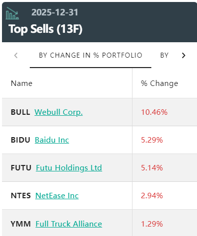 此外,百度(BIDU)、网易(NTES)、满帮(YMM)、冬海集团(SE)、博实乐(BEDU)等标的被清仓。