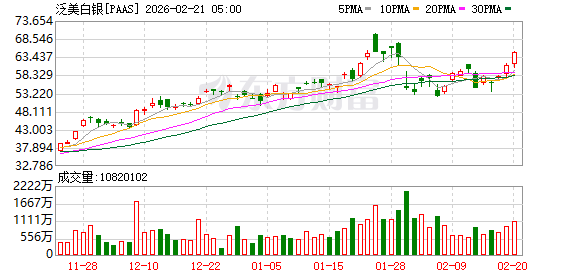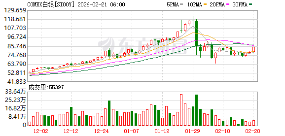 商品市场:国际油价02月20日下跌。截至当天收盘,纽约商品交易所WTI原油期货当月连续合约下跌0.09美元,收于每桶66.31美元,跌幅为0.14%。COMEX黄金期货当月连续合约上涨132.60美元,涨幅2.65%,报5130.0美元/盎司。COMEX白银期货当月连续合约上涨6.94美元,涨幅8.93%,报84.57美元/盎司。现货黄金上涨111.02美元,涨幅2.22%,报5107.32美元/盎司。现货白银上涨6.12美元,涨幅7.80%,报84.62美元/盎司。