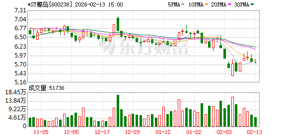 二级市场上,截至2月13日收盘,*ST椰岛下跌0.69%报5.74元/股,总市值为25.73亿元。近一月,公司股价累计下跌13.29%。