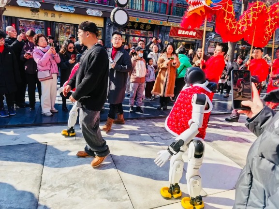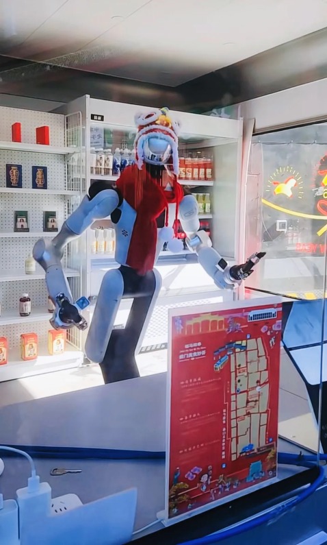 春晚亮相的机器人走进北京前门大街商铺,化身贴心店员,灵活招呼客人、熟练取货售卖,机械臂的精准动作,为百年老街注入满满科技活力。机器人不只会表演,更能走进日常消费场景,让买年货、逛老街这件事,既有人情味又有未来感。AI机器人还将化身“街头艺人”,不仅参与巡游互动,还将现场表演制作咖啡与煎饼,为游客带来“黑科技”烹饪的奇妙体验,也老商业街添了赛博烟火气。