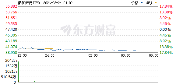诺和诺德盘中大跌16%,该公司新一代减肥药CagriSema的试验效果不及礼来的Zepbound。英伟达涨近1%,公司将于美东时间2月25日盘后发布财报。