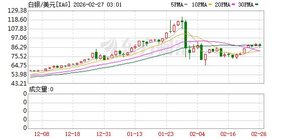 2月26日,国际银价持续下挫,COMEX白银期货一度大跌超5%,现货白银一度大跌逾3%,截至发稿,COMEX白银期货跌幅为4.79%,现货白银跌幅为2.67%。黄金价格也小幅跳水,COMEX黄金期货一度跌超1%。