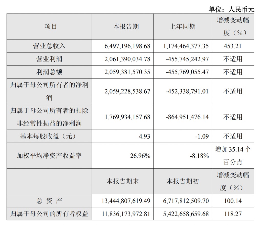 寒武纪在本次报告期内盈利方面实现历史性突破,全年归母净利润20.59亿元,上年同期为亏损4.52亿元;扣除非经常性损益后的净利润为17.70亿元,上年同期为亏损8.65亿元。公司表示,营业利润、利润总额、归属于母公司所有者的净利润、归属于母公司所有者的扣除非经常性损益的净利润均同比扭亏为盈,主要系本期营业收入大幅增长所致。