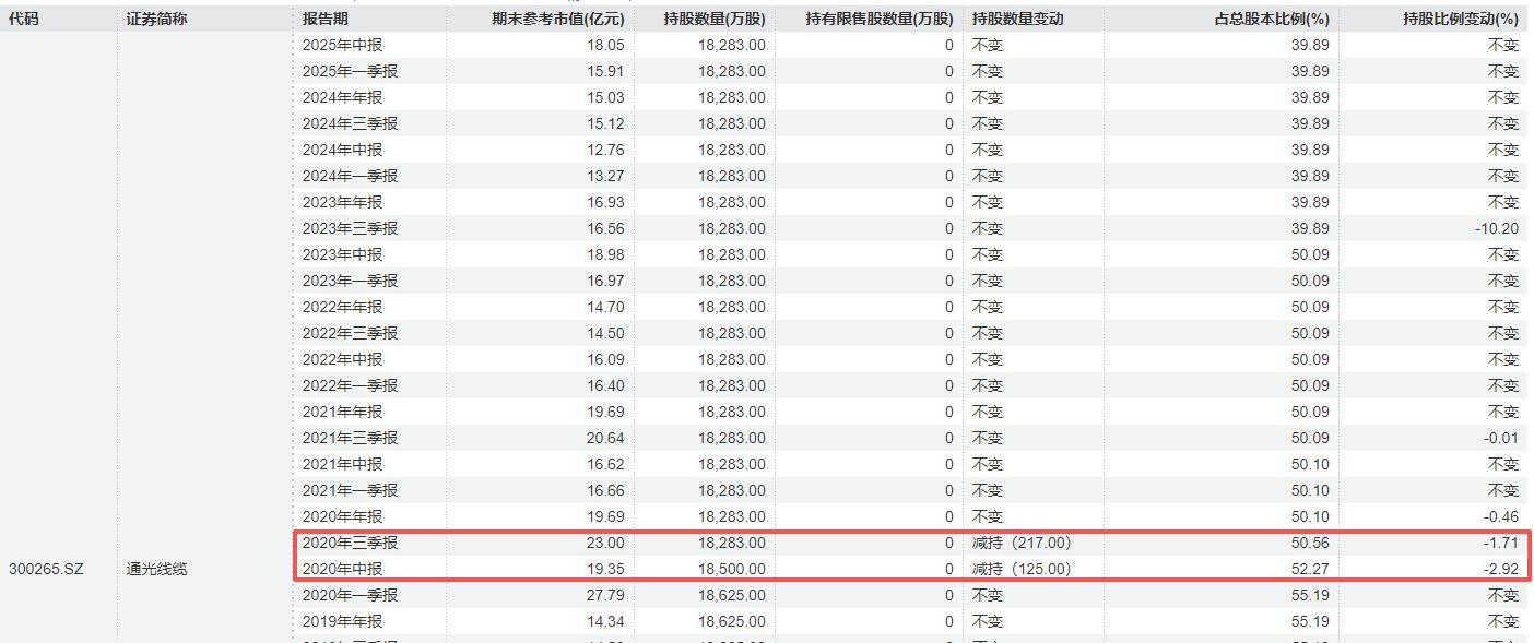 通光集团上一次减持还是在2020年
