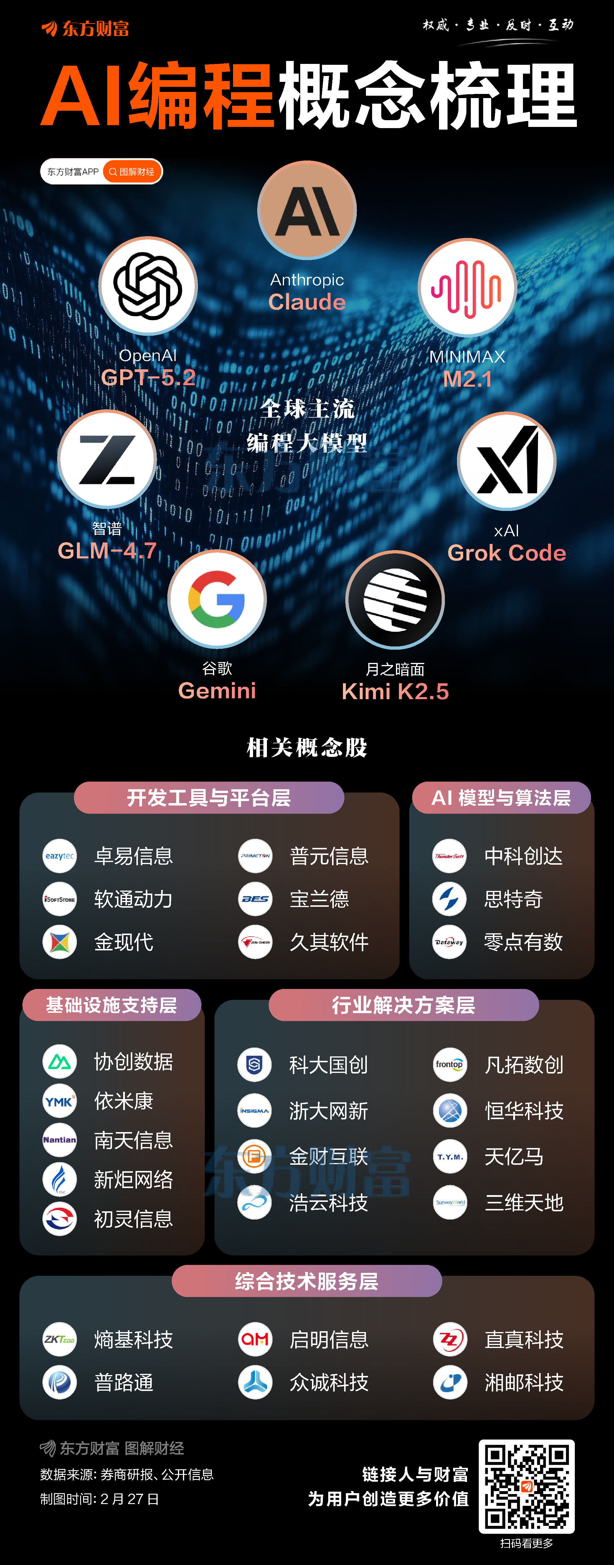AI编程板块2月27日表现强势,普元信息、金现代、新炬网络涨停;浩云科技、众诚科技大涨超10%。