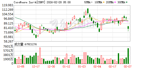 消息面上,CoreWeave最新公布的财报显示,公司2025年第四季度的营收高于分析师预期,但净亏损大幅增加,且其对今年第一季度的业绩指引也不及预期。