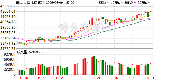 3月4日早盘,前两日连续暴涨的油气、航运、贵金属板块深度回调,电网设备板块逆势走高。截至发稿,通光线缆20cm涨停,积成电子、顺钠股份、三变科技、汉缆股份等多股强势封板,安靠智电、新特电气、双杰电气、神马电力等涨幅居前。