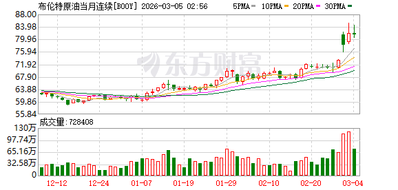周二,布伦特原油期货收涨3.66美元,涨幅4.7%,报每桶81.40美元,创2025年1月以来最高结算价。美国原油收涨3.33美元,涨幅4.7%,报每桶74.56美元,创6月以来最高结算价。