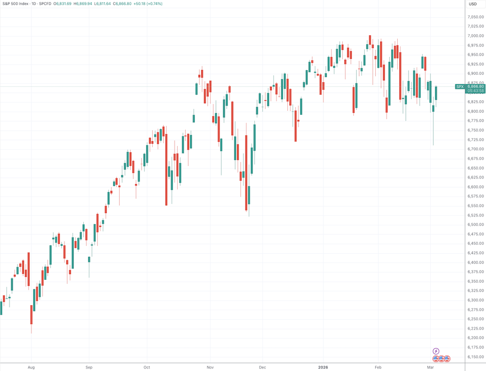(周二盘中,标普500指数一度跌至去年11月底以来的新低,来源:TradingView)