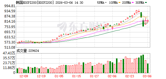 截至4日收盘,韩国综合指数下跌12.06%,报5093.54点。本周以来,韩国综合指数累计下跌逾18%;今年以来,韩国综合指数累计上涨逾20%。此外,本周以来,美元对韩元累计涨约1.7%。