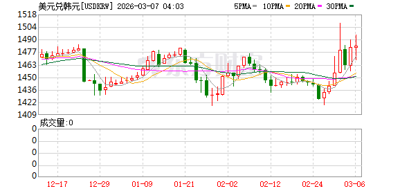本周以来,截至发稿,美元对韩元累计涨约1.7%。