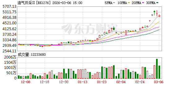 3月3日,A股集体走弱的情况之下,石油天然气指数大涨9.83%、燃气指数涨9.29%、海运指数涨8.82%、能源设备指数涨幅5.91%。