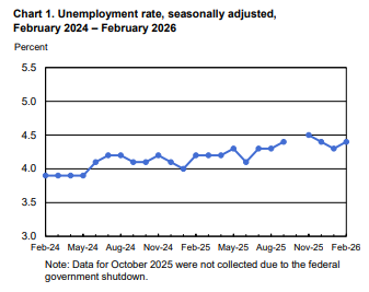 报告还显示,美国2月失业率录得4.4%,市场原先认为会维持在4.3%不变;就业参与率降至62%,也低于市场预期,1月数据从62.5%下修至62.1%。