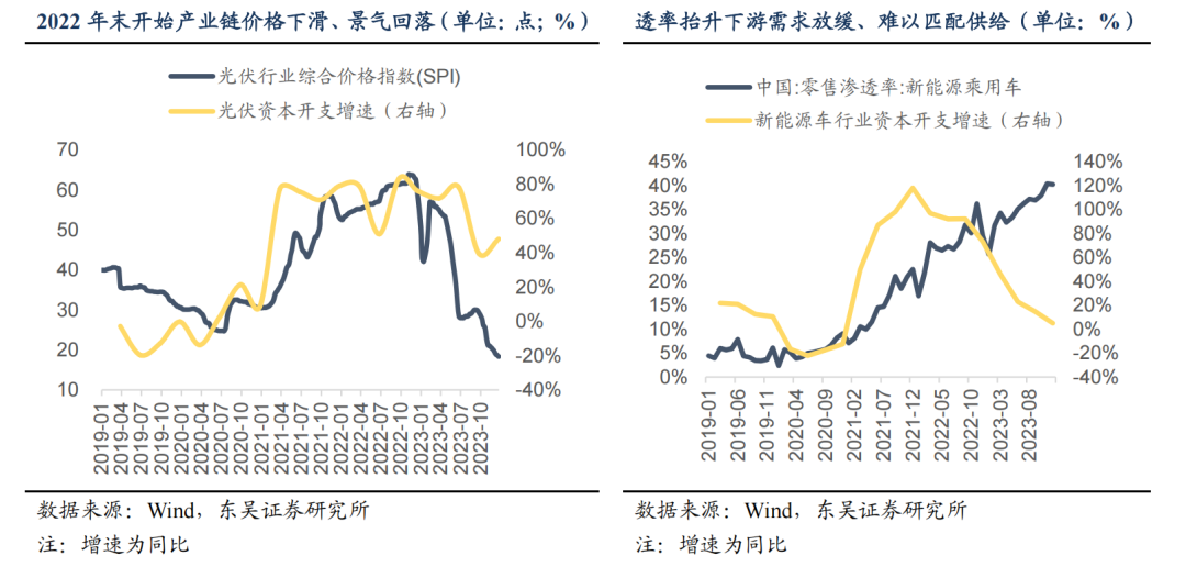 2022年新能源赛道整体步入成长红利逐步消退阶段,新能源车渗透率迈过高增临界点、告别早期爆发式增长;光伏产业链同步迎来产能持续投放,而海内外需求增速放缓,叠加行业高位资本开支,供需格局快速恶化,赛道盈利预期边际走弱。整体而言,新能源行业从高速成长期向成熟期平稳过渡,景气有所弱化。