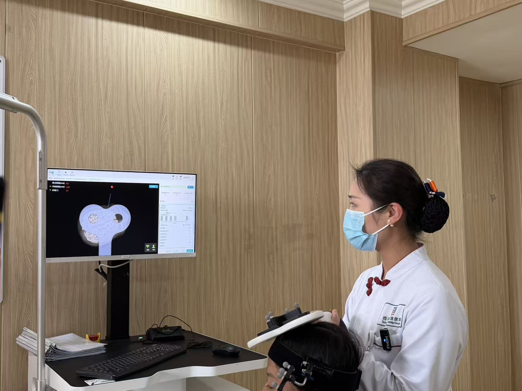患者在接受脑机接口治疗 图片来源:每经记者陈星摄