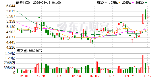 截至10日美股收盘,蔚来涨15.18%,报收5.69美元。