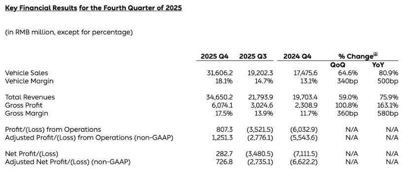 值得一提的是,在财报电话会上,蔚来CFO曲玉表示,基于今年公司有五款大SUV在售,以及大车在毛利率上的强势表现(2025年四季度ES8毛利超过20%,接近25%),2026年蔚来将力争实现Non-GAAP全年盈利。