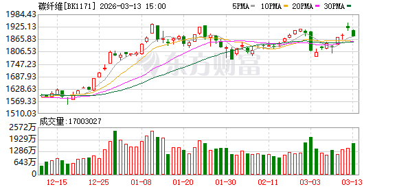 受此消息影响,3月11日碳纤维概念午后上涨,概念指数盘中最高涨幅达到2.27%,收盘上涨1.71%,中复神鹰、吉林碳谷、远东股份、泰和新材收盘涨幅均在5%以上。