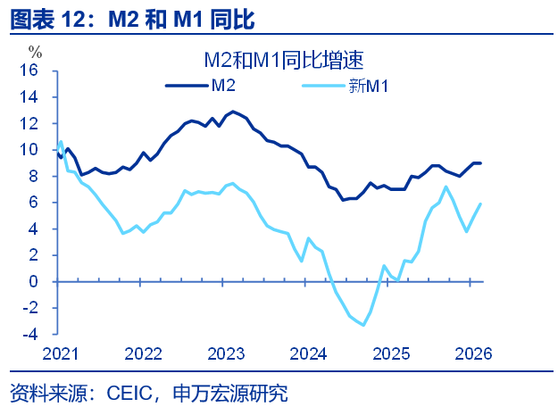 2月M1改善,或源于春节错位下居民活期存款的增长,而春节消费超预期释放,进一步放大该效应。从历史数据看,春节月份居民活期存款易走高,或与表外资产回表、企业发放年终奖及消费活化相关。2026年春节明显后置且消费超预期,居民活期存款增长可能成为M1改善的核心驱动力。M2增速保持平稳,或主要得益于财政支出力度加大、财政存款显著回落。