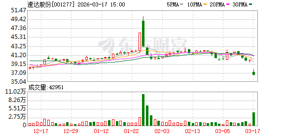 二级市场上,东方财富数据显示,速达股份16日早盘一度跌超1%,但午后震荡走高并翻红,最终收涨0.25%,全天成交3038万元,换手率1.68%。