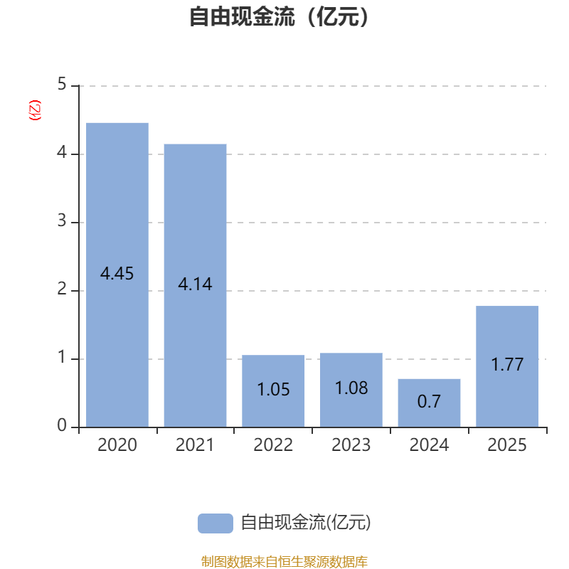 截至2025年,公司经营活动现金流净额为2.25亿元,同比增长39%;筹资活动现金流净额-1.69亿元,同比减少4703.9万元;投资活动现金流净额-1.26亿元,上年同期为4737.77万元。