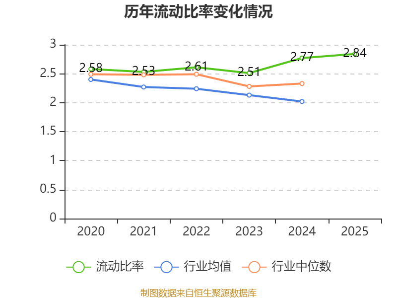 2025年,公司流动比率为2.84,速动比率为2.35。