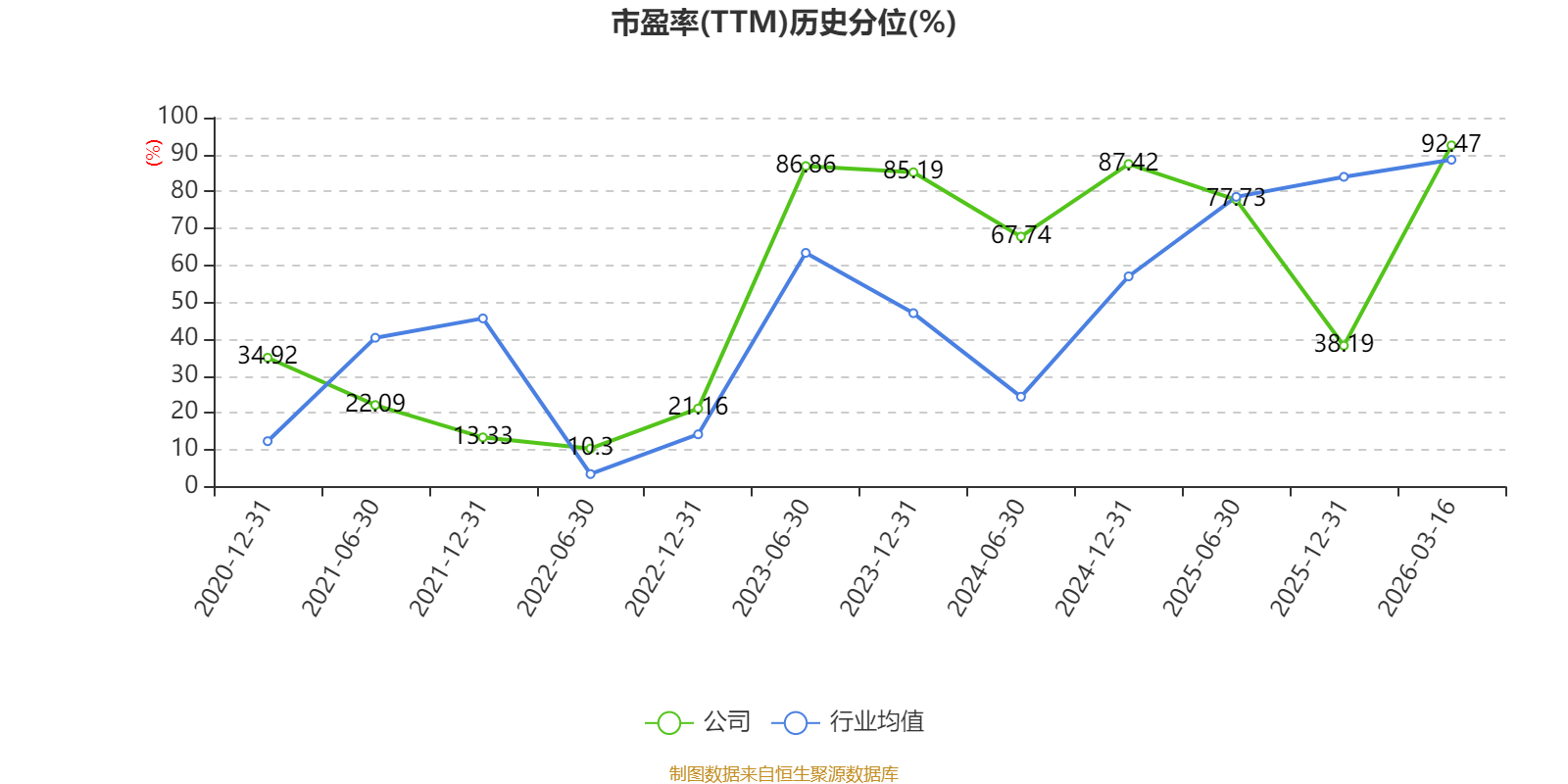 市盈率、市净率为负时,不显示当期分位数,会导致折线图中断。