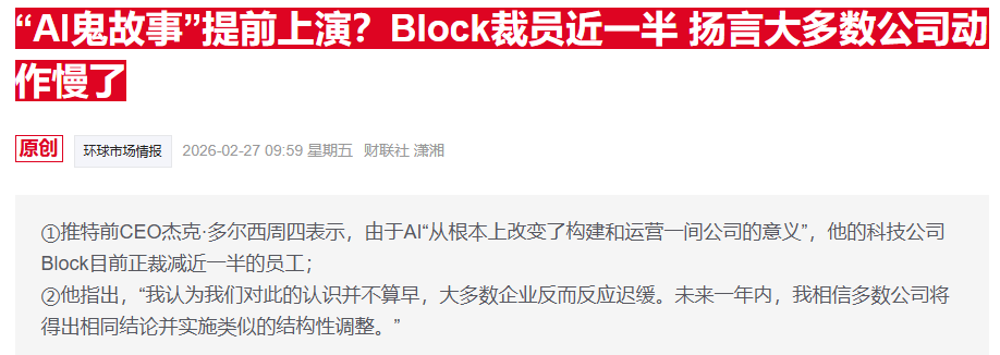 上个月,推特前CEO杰克·多尔西(Jack Dorsey)创立的金融科技公司Block宣布裁减近一半员工,原因是AI正在让越来越多的工作变得可以“自动化”。